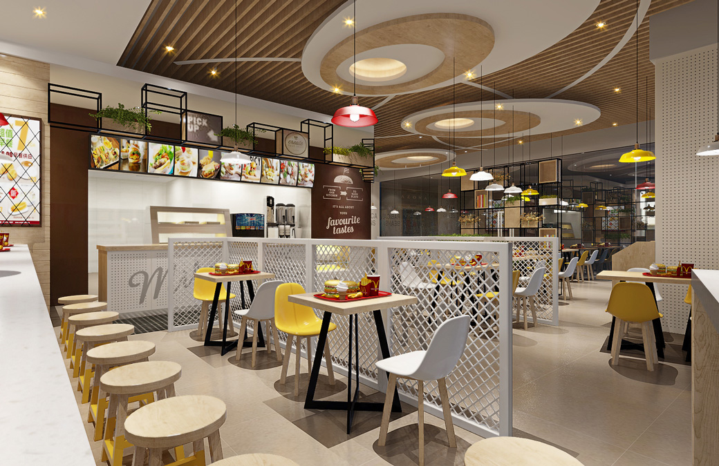 漢堡店裝修對(duì)于燈光的布局設(shè)計(jì)來(lái)說(shuō),不論采用何種光源或照射方式,光線的強(qiáng)度是最根本的影響因素,同時(shí)光線強(qiáng)度對(duì)顧客的就餐時(shí)間也有影響。因此漢堡店裝修要組合運(yùn)用光源和照射方式,進(jìn)而達(dá)到合理的燈光照明效果。