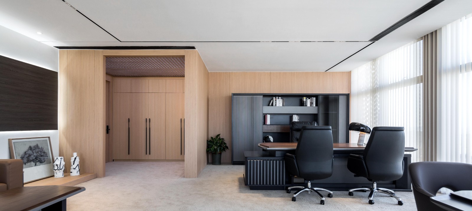 辦公室的空間中,打造一個榮譽墻和展示墻的區(qū)域是非常必要的,這不僅能夠展示著企業(yè)的文化和素養(yǎng),帶給辦公室的整體裝修效果也是比較不錯的,儲物格的存在一般都是采用嵌入式的方式進行施工的,在節(jié)省空間的同時還能夠增加空間的層次感的存在,是辦公室裝修中不錯的墻面裝飾選擇。