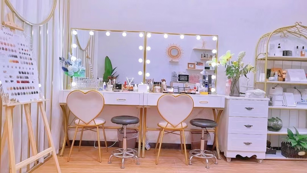 美甲區(qū)是美甲店最重要的區(qū)域。裝修時也要跟整個風格相匹配,建議選擇鮮艷的桌椅,吸引消費者的目光,桌面上陳列的美甲器皿要整整齊齊,看起來美觀又便于觀賞。且鏡子的擺放位置要突出實用。