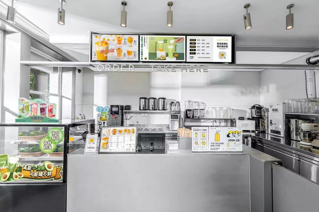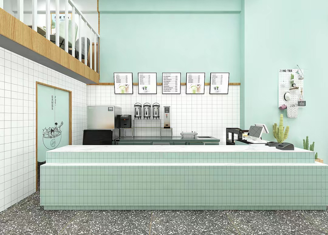 水槽:視店面大小,奶茶店面積小的水槽設置一個,奶茶店大的,前場后場各設置一個,水槽上下水齊備。
