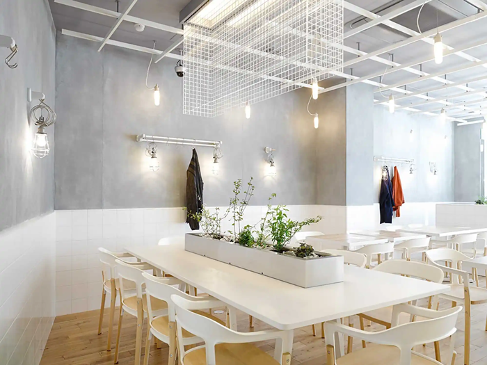 典雅簡約的裝修,最適合和三兩老友在空隙之余交換聊心的上上之抉擇,面向的是知性的消費群體,應(yīng)用銀色和白色來搭配,點綴一點綠植,給顧客一種輕松愉悅的感覺,獨自享受都市里特有的寧靜。