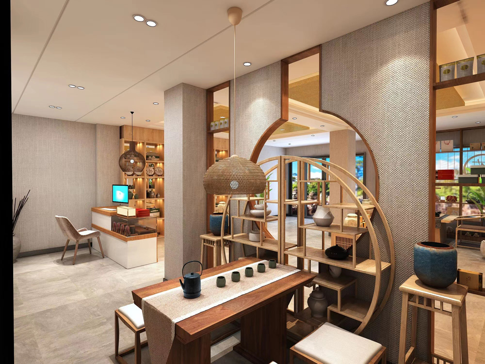 茶葉店的陳列:茶葉店以銷售產(chǎn)品為主,產(chǎn)品陳列架是茶葉店內(nèi)部布局的主體區(qū)域,主要還是大方得體,線條流暢,一般應(yīng)采用木質(zhì)材料,這樣能體現(xiàn)出茶葉和諧的統(tǒng)一,同時能夠做一些多寶格和一個小書柜,以便擺茶具和茶書用,有條件能夠擺一張八仙桌或茶幾以便品茶用。
