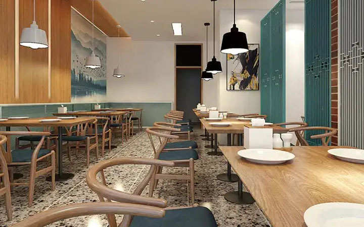 面館的整體空間較小,可采用左、中、右分布,左右兩邊按照橫向進(jìn)行擺放,這樣可以使得整個空間布局視覺上更加開闊,使得整個店鋪看上去有秩序,有氛圍,空間靈活性、整體性更大;如果布局分布不合理,會給人混亂沒有秩序,給消費(fèi)者也是一種不舒適的感覺,小面館裝修要以簡約實(shí)用為主,這樣給消費(fèi)者一種舒適感。