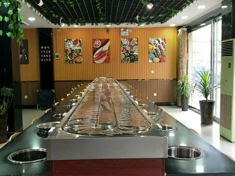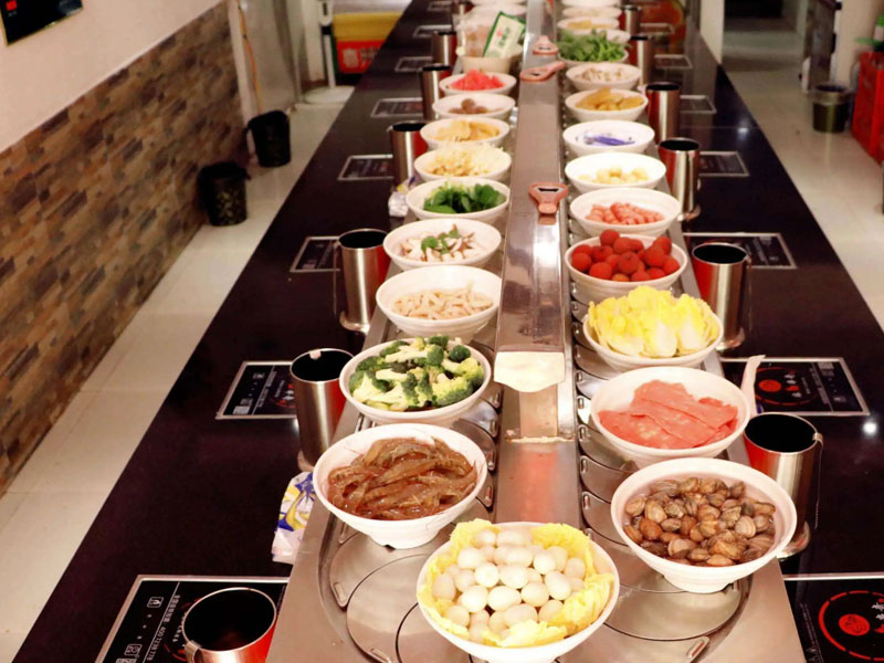 4、菜品充足。開旋轉(zhuǎn)小火鍋店,菜品是非常講究的,除了菜品的新鮮之外,還有多選一些品類,讓人們在去吃飯的時候可以多做一些選擇,還有在上方的位置放一些飲料搭配使用。還有就是調(diào)料位置,這個也是特別需要注意的,跟我們?nèi)コ曰疱佉粯?,蘸醬是必不可少的,可設(shè)置在方便拿取的位置,放幾種比較常用的就好,以滿足顧客的需求。