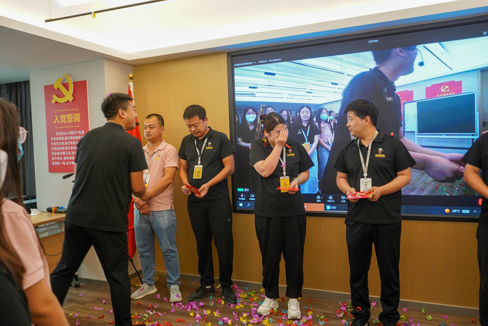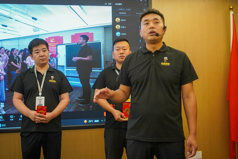 2022年8月1日,在蟻族裝飾鄭州總公司會議室,公司對奮斗者平臺中涌現(xiàn)的5名優(yōu)秀奮斗者給予獎勵,胡總上臺為獲獎?wù)哳C獎。