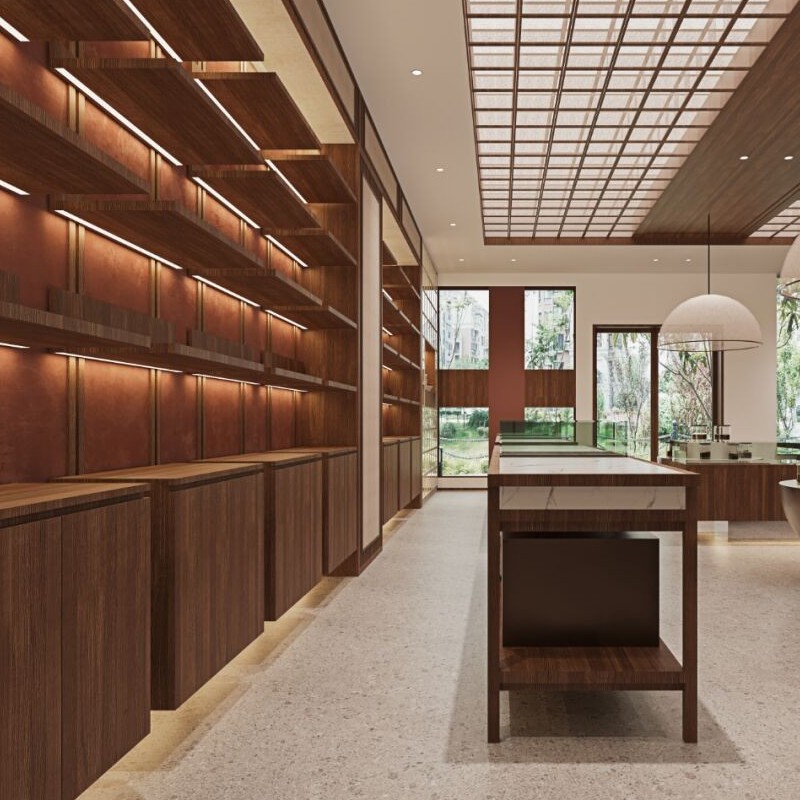 中醫(yī)是傳統(tǒng)文化的瑰寶,館內裝修采用中式、新中式或者古典的風格來進行裝飾。例如,采用木質桌椅,和吊頂,隔斷和柱子則可以采用木雕雕刻的方式來進一步烘托濃厚的文化氛圍;墻面上還可以懸掛一些毛筆字畫或者傳統(tǒng)國畫進行裝飾,突出中國特有的古風韻味。