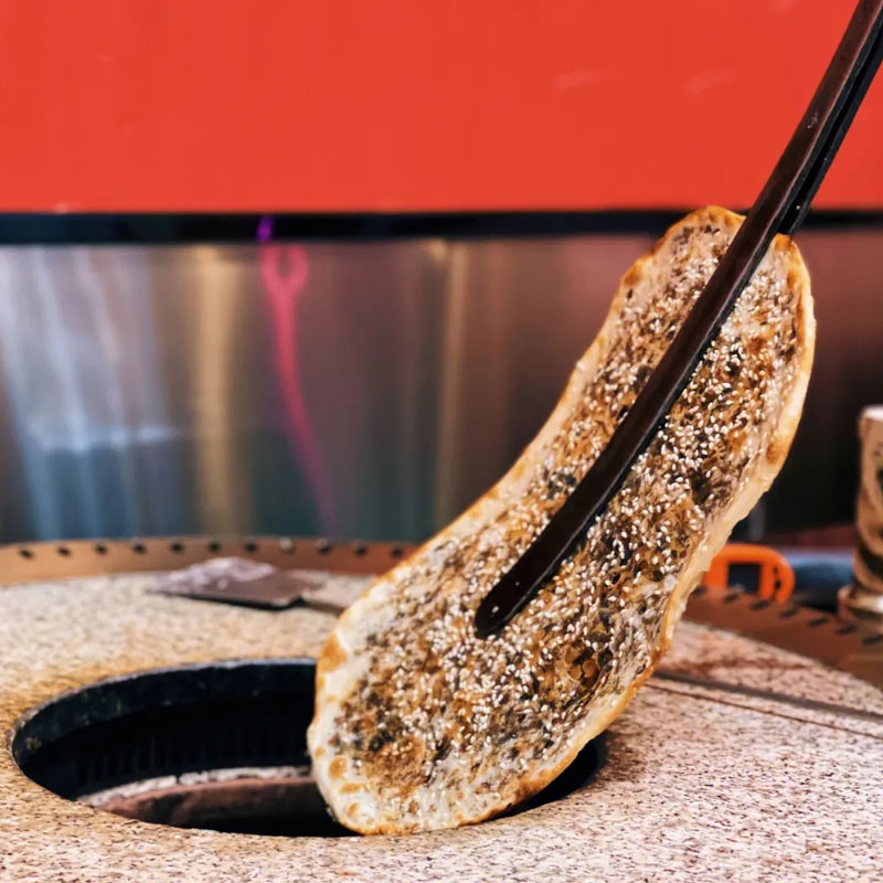 裝修風(fēng)格都是統(tǒng)一的,麥基色、中國紅。店鋪風(fēng)格鮮明,引人注目。陶土爐子是阿甘鍋盔自主設(shè)計制作的,雖然一次性只能制作6到7張餅,但顧客體驗(yàn)感好。吃盔(虧)是福,比如鍋盔烤制的不好,就會送給顧客,顧客覺得自己不會吃虧,自然會口口相傳,等等這些都是它特有的優(yōu)勢。