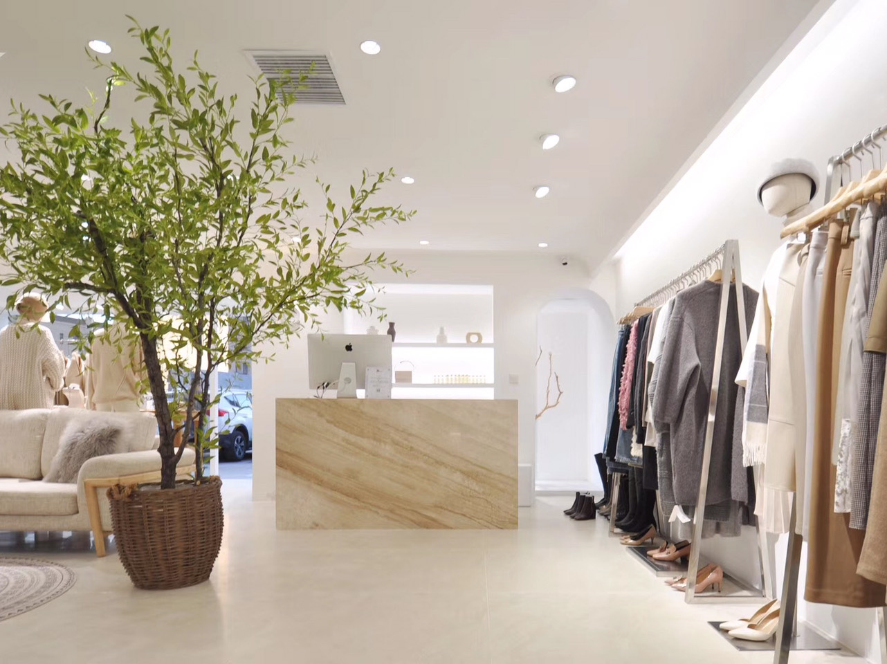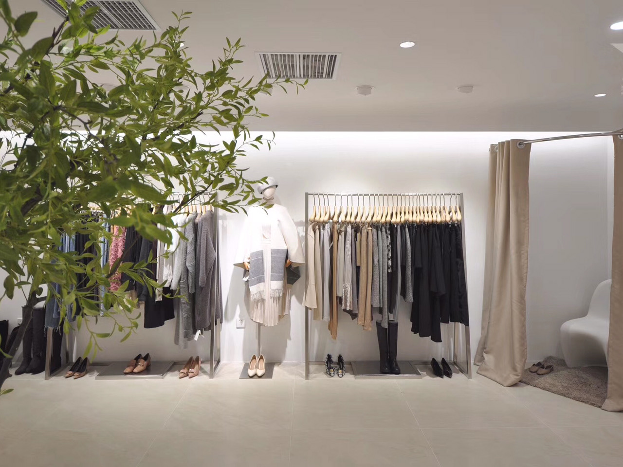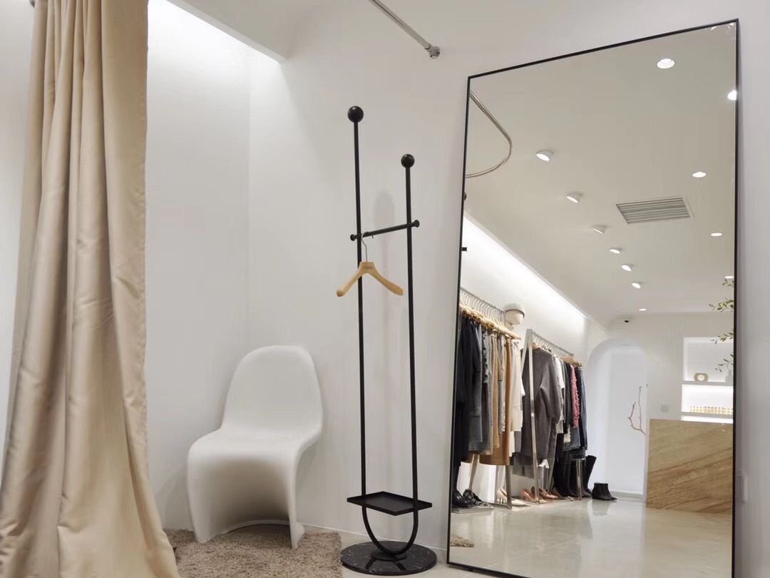 本案所在商場(chǎng)以年輕時(shí)尚品牌居多,設(shè)計(jì)師綜合分析了業(yè)主的品牌特點(diǎn)和經(jīng)營(yíng)策略,作為一個(gè)年輕的時(shí)尚快銷品類,需要在眾多年輕時(shí)尚品牌中脫穎而出,吸引年輕群體的目光?!耙陨賱俣啵院?jiǎn)勝繁”是整個(gè)設(shè)計(jì)的核心理念,空間是產(chǎn)品的陪襯,產(chǎn)品是空間的主角,在空間里使用產(chǎn)品的人就是女王或君臨天下。