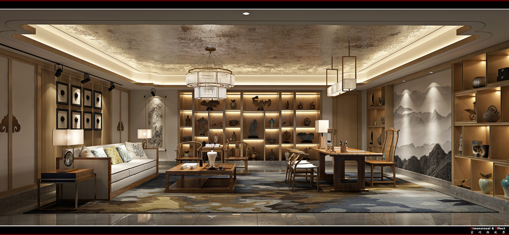 董事長及經(jīng)理辦公室設計體現(xiàn)功能,務實。形式穩(wěn)重,講究對稱。穿插空間的水墨畫及藝術(shù)地毯活躍空間氛圍,映襯設計主題。
