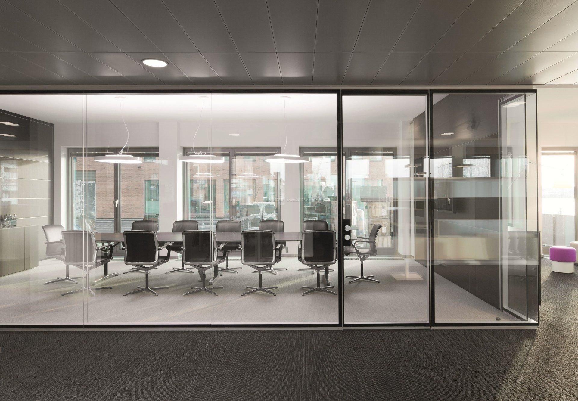 大會議室開敞式旋轉(zhuǎn)門設計,新穎獨特追求空間的通透性。旋轉(zhuǎn)門結(jié)合開敞區(qū)藝術(shù)屏風使用水墨圖案玻璃體現(xiàn)東方意境。