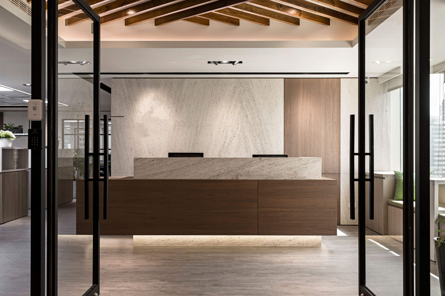設計面積: 200平方米項目類型:辦公空間裝修風格: 現(xiàn)代主要材料:木紋鋁板,雪花白大理石,黑色鏡面不銹鋼,亞面灰色石材 設計獨特之處在于很好融合了時尚科技、中式文化、自然生態(tài)這幾個看似并無關(guān)聯(lián)的設計理念??臻g選用現(xiàn)代水墨灰白以及深木色調(diào)貫穿整個空間,其間以不同色彩比例配比,各異的材質(zhì)組合來詮釋設計意圖。