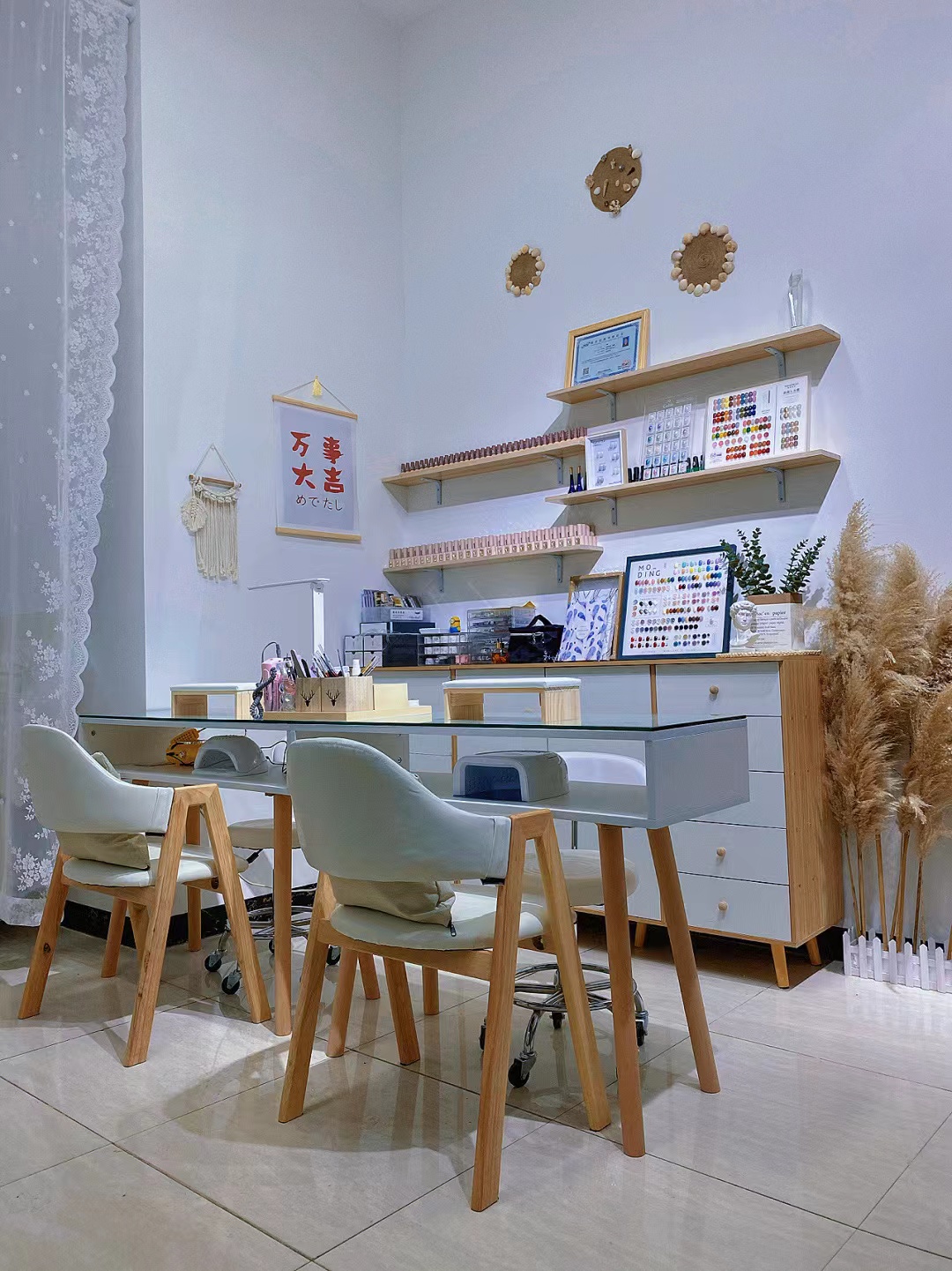 除了以上提到的接待區(qū)、美甲區(qū),剩下的空間也需要利用起來。如:陽臺可以擺放數(shù)盆綠植來增加室內(nèi)的活力感,還可以放些小書架,放些美甲有關的雜志供客人觀看。一些空白的墻面上還可以掛一些最新的美甲款式或是近期熱銷的美甲款式,讓客人有了更好的選擇。