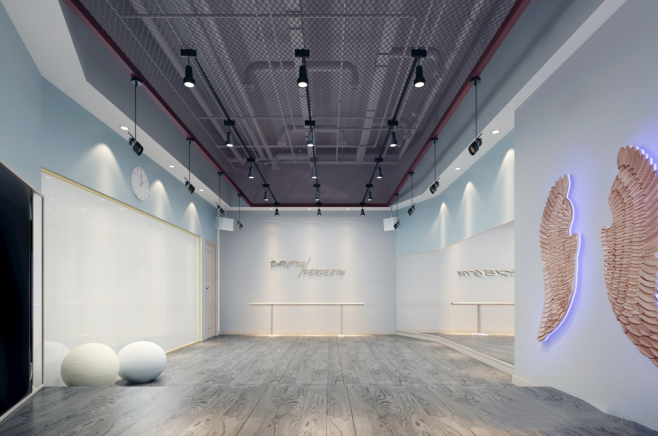 主要用材:石膏板、鋁方通、舞蹈地板、木地板、防火板、乳膠漆